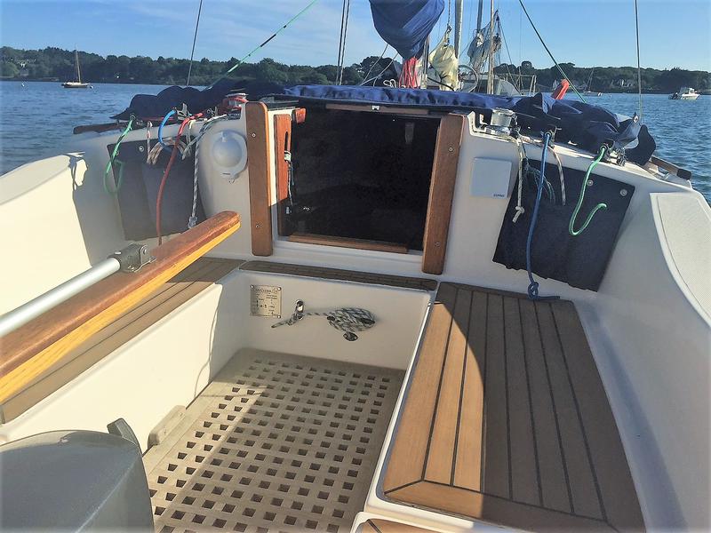 Much loved trailer sailor combining classic lines with a fast well balanced modern hull. Launched May 2015 this pretty gaff cutter offers sparkling sailing performance, comfortable secure cockpit, and four berth cabin. Karver roller reefing Genoa, Staysail and slab reefed Mainsail. Comprehensively fitted to include flexiteak in cockpit and cabin, coppercoat antifouling, solar panel charging for electrics including LED masthead lights, LED cabin lights, depth sounder and charger, Silva compass, spinlock cleats, anchor and bow roller, sprayhood, additional midship cleats, mooring protectors, swim ladder, chemical toilet, boat cover, trailer with rear jockey wheel and spare wheel, 5HP Yamaha outboard. Length overall 5.8m, with bowsprit 7.2m. Lifting keel draft 0.45m / 1.22m. Just returned from 4 seasons sailing in The Morbihan Brittany (mooring may be available for a season).