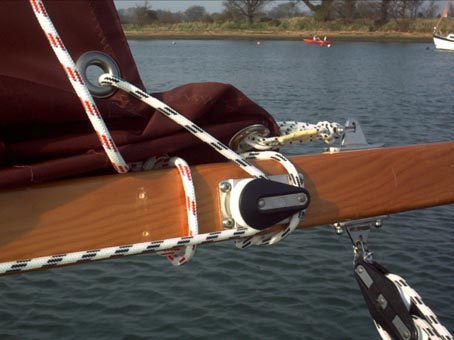 2. The peak halyard is tied to this block with a simple figure of 8 knot.